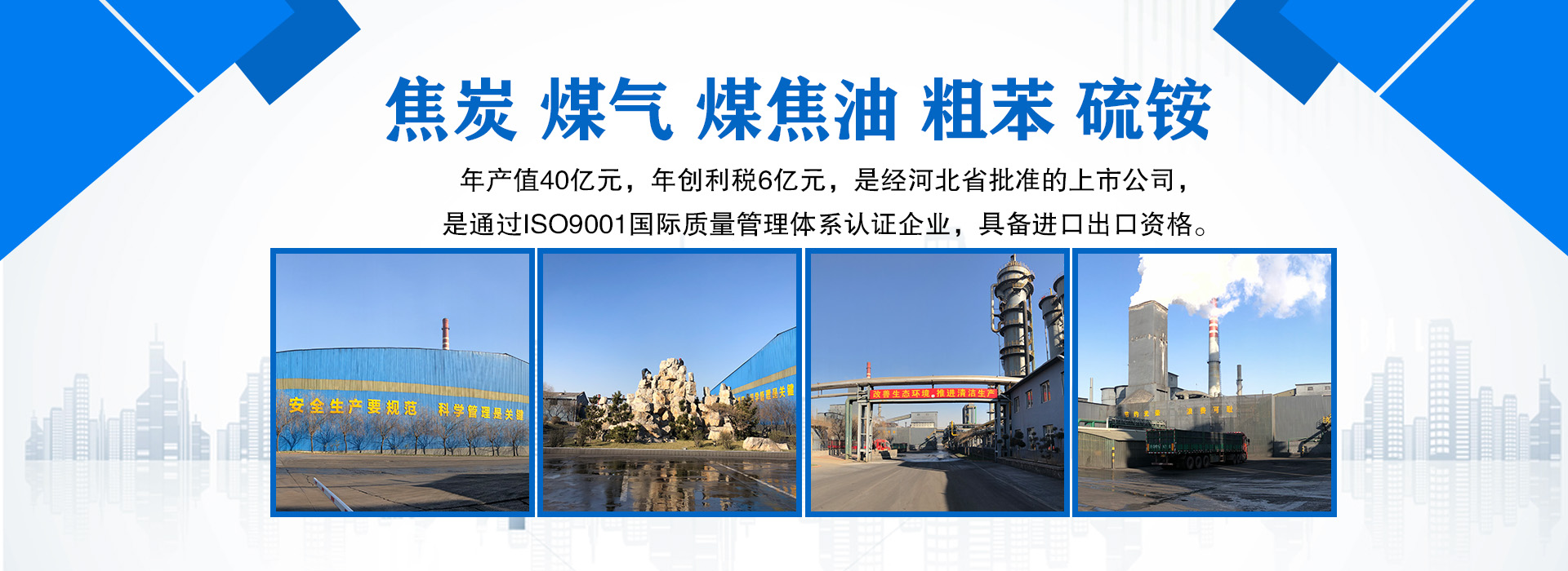 河北玉洲煤化工業股份有限公司始建于1994年,注冊資金3000萬元,在冊職工600余人,是生產標準冶金一級焦炭為主營企業,承擔著城市居民供煤氣的社會責任,目前廠區生產設備有4.3米,2×50孔搗固焦爐1座,年生產能力60萬噸/年冶金焦炭,同時建有配套的副產品化產車間工藝設備,副產品主要有煤氣、粗苯、焦油、硫銨等,位于武安市東環路與309國道交叉處,武安市中興路東端,距火車站1公里,交通方便,實力雄厚,是邯鄲市和武安市重點企業,是經河北省批準的上市公司,是通過ISO-9001國際質量管理體系認證企業,具備進出口資格。